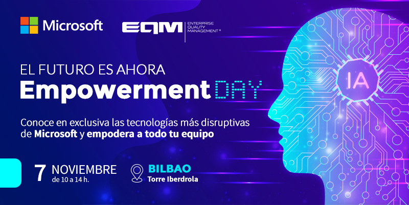 Próxima Jornada Profesional, Microsoft Empowerment Day Bilbao Desde EQM y Microsoft, te invitamos a la Jornada Profesional Empowerment Day, que celebraremos en Bilbao el próximo 7 de noviembre. Empowerment Day es el evento de gestión empresarial y productividad que marcará un antes y un después en tu empresa y en el que conocerás exclusiva las […]