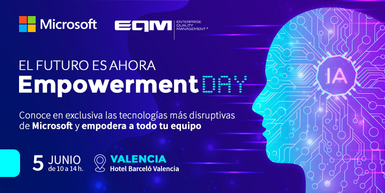 Desde Microsoft y EQM, partner experto en la implantación y optimización de soluciones de negocio de Microsoft, te invitamos a la Jornada Empresarial Empowerment Day 2024 Valencia, donde podrás conocer cómo abordar la transformación digital de tu empresa con las herramientas más avanzadas.