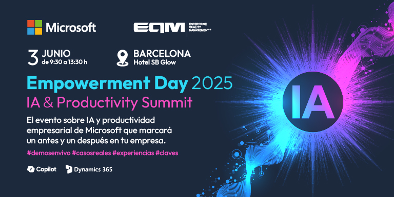 Desde Microsoft y EQM, partner experto en la implantación y optimización de soluciones de negocio de Microsoft, te invitamos a la Jornada Empresarial Empowerment Day 2025: IA & Productivity Summit, el evento sobre inteligencia artificial y productividad empresarial de Microsoft que marcará un antes y un después en tu empresa.