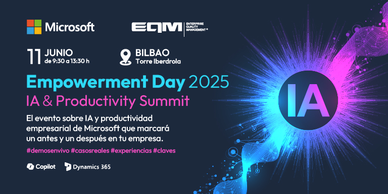 Desde Microsoft y EQM, partner experto en la implantación y optimización de soluciones de negocio de Microsoft, te invitamos a la Jornada Empresarial Empowerment Day 2025: IA & Productivity Summit, el evento sobre inteligencia artificial y productividad empresarial de Microsoft que marcará un antes y un después en tu empresa.