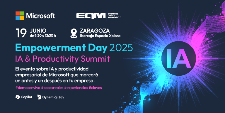 Desde Microsoft y EQM, partner experto en la implantación y optimización de soluciones de negocio de Microsoft, te invitamos a la Jornada Empresarial Empowerment Day 2025: IA & Productivity Summit, el evento sobre inteligencia artificial y productividad empresarial de Microsoft que marcará un antes y un después en tu empresa.
