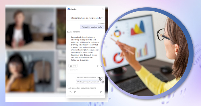 Resume quién dijo qué, dónde están alineadas las personas y dónde no están de acuerdo, y sugiere elementos de acción, todo en tiempo real durante una reunión en Teams